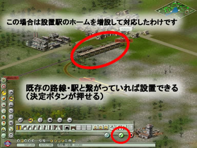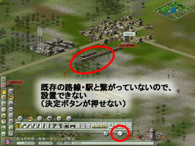 既存の駅や線路に繋がるように仮設置しないと、決定ボタンが押せず、やり直す羽目になる。