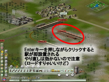 Enterキーを押しながら鉄道駅設置すると、仮設置でなく即そこに設置される(即建設費が引かれる)