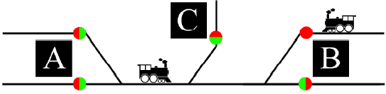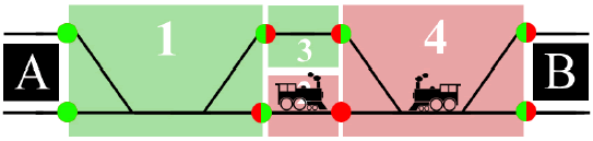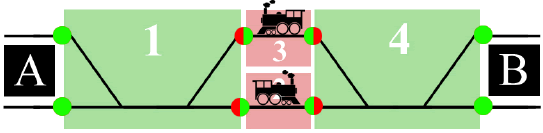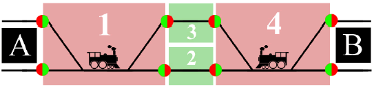 信号がポイントで不正確に位置する場合、いわゆるデッドロックが生じることができます。列車は信号の両側に置かれます。また、どちらのものも進むことができません。